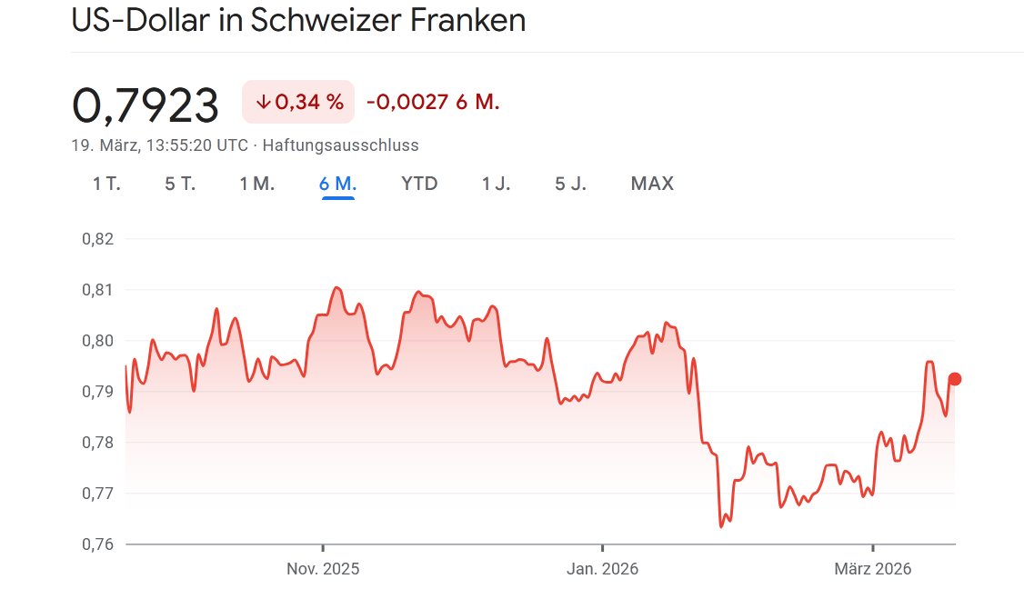 The National Bank explicitly addresses the international situation: "In view of the conflict in the Middle East, the National Bank's readiness to intervene in the foreign exchange market is increased." In doing so, it aims to counteract a rapid and excessive appreciation of the franc, which would jeopardize price stability in Switzerland. With a slight increase in inflation from 0.0 percent in November last year to 0.1 percent in February and the rise in energy prices due to the war in the Middle East, inflation is expected to rise in the coming quarters. In the longer term, however, the SNB continues to forecast inflation at a low 0.5 percent for 2026, 0.5 percent for 2027, and 0.6 percent for 2028. This means that inflation remains within the range of price stability as sought by the National Bank. It stated: "The medium-term inflationary pressure has hardly changed since the last assessment."
